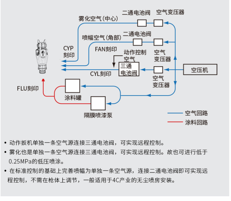 采用中心空氣與角空氣各自獨立控製,可遠程改變噴幅大小。